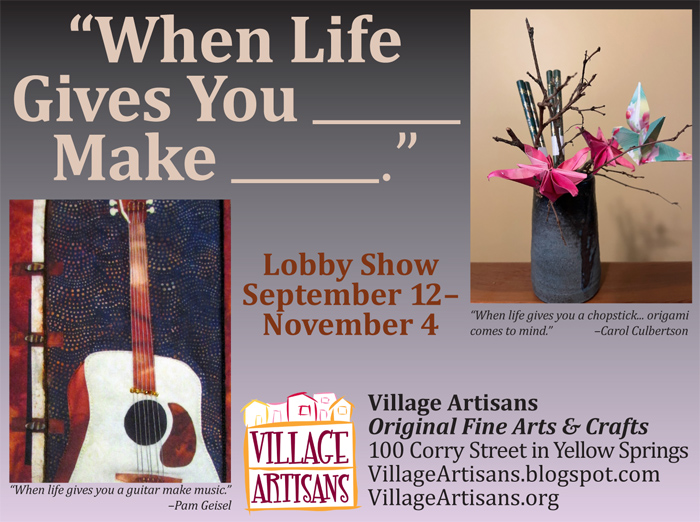 Pottery, wooden boxes, baskets, glass, quilts, cards, paintings, prints and t-shirts are just a few of the works of art on display at Village Artisans! Stop by and check out the shop!